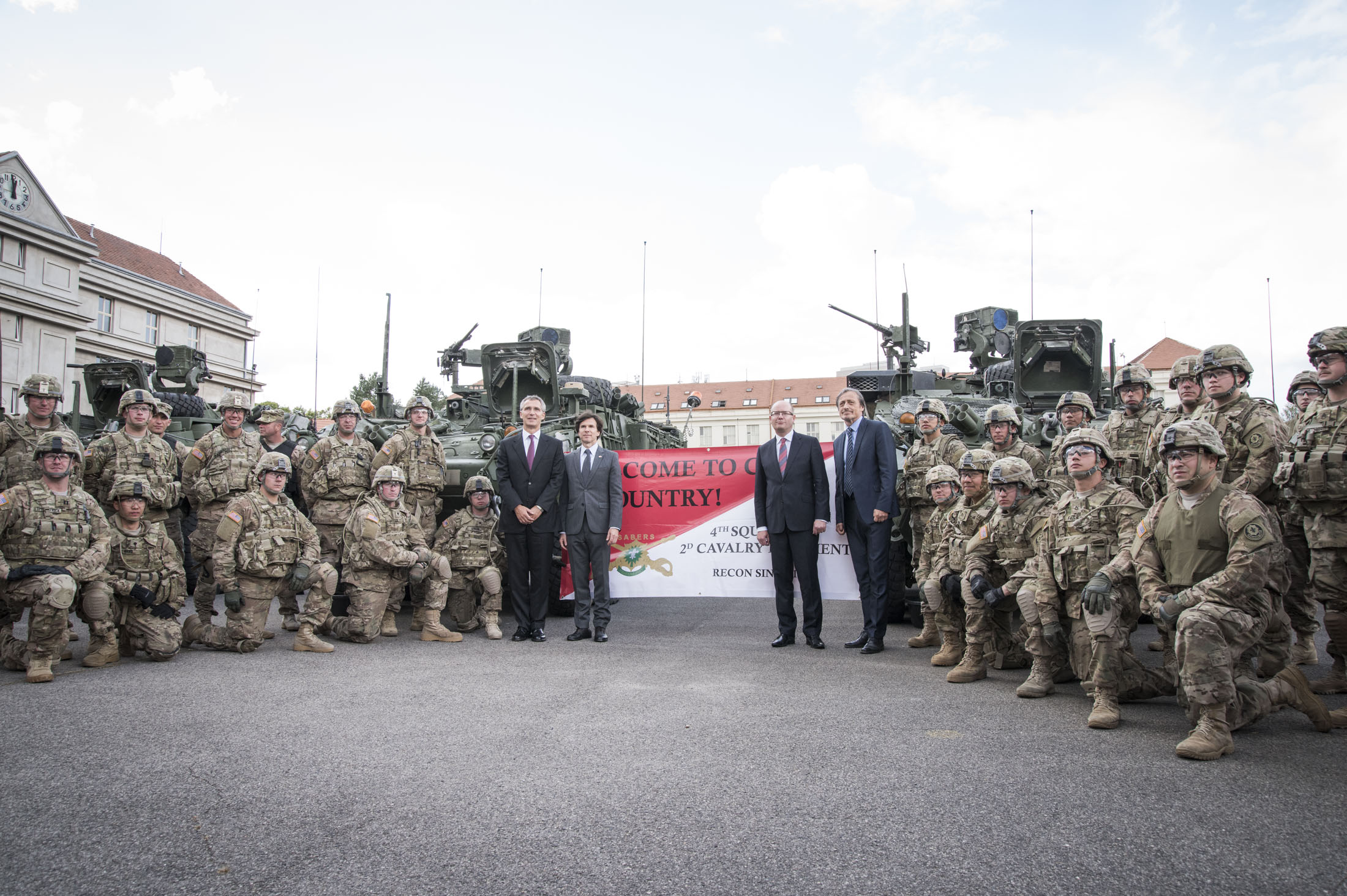 NATO Secretary General Jens Stoltenberg with Prime Minister Bohuslav Sobotka, Minister of Defense of the Czech Republic Martin Stropnicky , the U.S Ambassador to Czech Republic Andrew H. Shapiro and the US Army Convoy. 9.September 2015 ©NATO