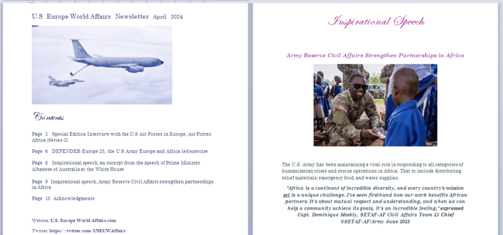 Acknowledgments, source: U.S Army Europe and Africa. Article by Catherine S. Schmidt, Editor in Chief.