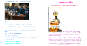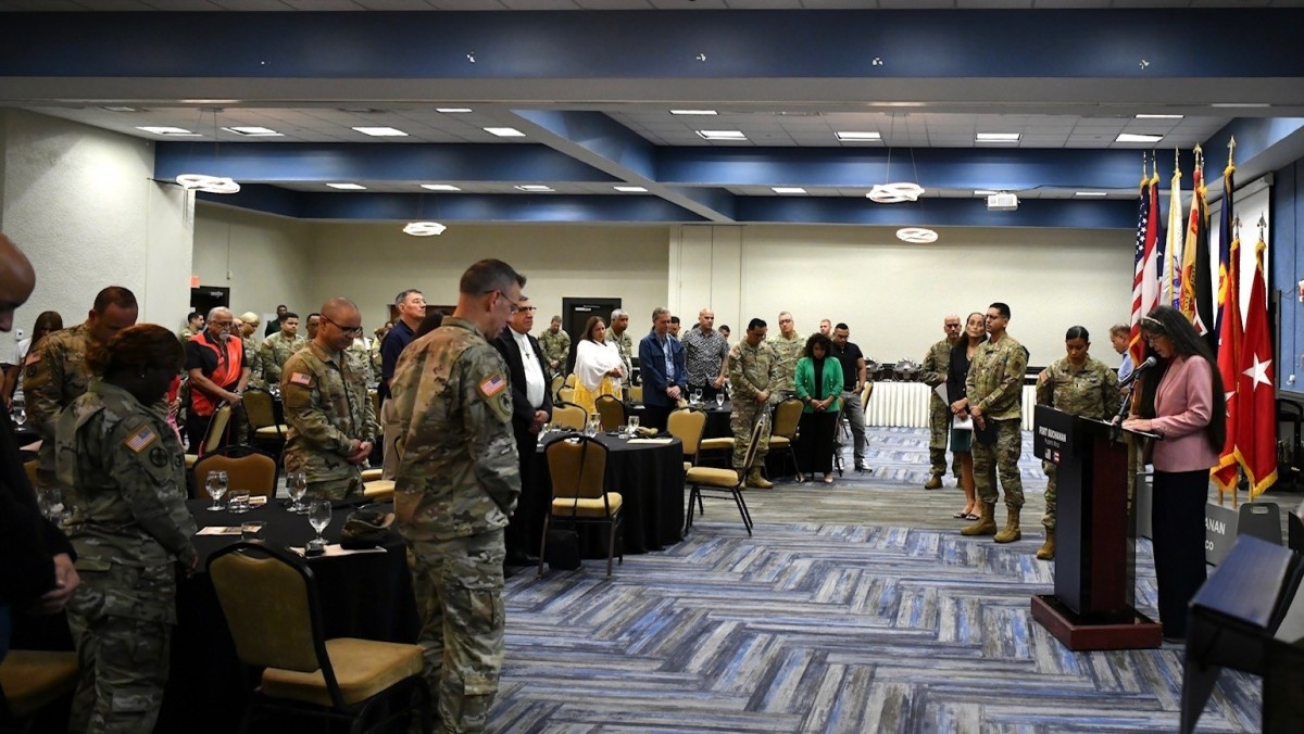 Acknowledgments: Sources © U.S Army / The White House/ National Day of Prayer. Image: Service members, families, retirees, and veterans gathered in the National Prayer Luncheon, where they prayed for peace and unity in Puerto Rico, the United States, and around the world. May 1, 2025 ©U.S Army /David Hernandez. Video: 405th AFSB joins Army and Nation in the National Day of Prayer May 1 2025.©DoD/ 405th Army Field Support Brigade – Europe and Africa/ National Guard/ 405th Army Field Support Brigade- Europe and Africa. May 1, 2025, by Cameron Porter. Article by Catherine S. Schmidt, Editor in Chief.