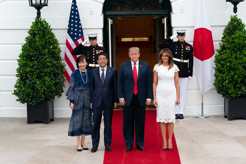 President Trump and First Lady Melania Trump Welcome Prime Minister Abe and Mrs. Abe of Japan to the White House April 26, 2019. ©The White House 2019 (Official White House Photo by Andrea Hanks)