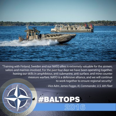 The BALTOPS 2016, was the largest Exercise combining of Naval Maritime and Air Defence of 17 Allied Nations, contributing over 6,100 Troops, more than 60 Military Aircraft, 45 Ships and Submarines, added with over 800 Amphibious Troops, to Exercise and Enhance their Joint Capabilities during the time of peace as well as crisis and conflicts.