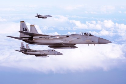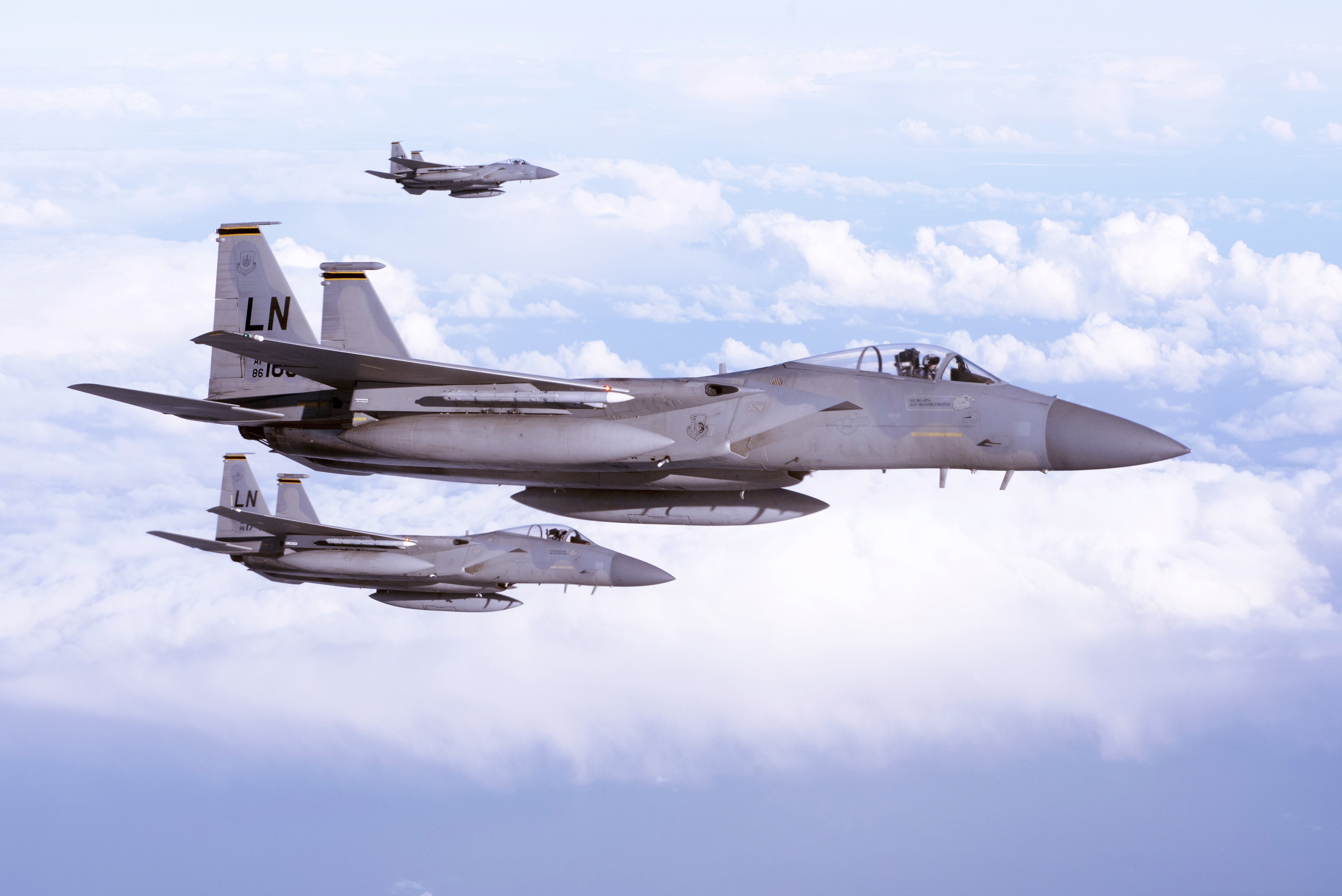 U.S 493rd Fighter Squadron F-15C Eagles fly back to Royal Air Force Lakenheath, England, from Estonia after completion of Baltic Trident March 19, 2021